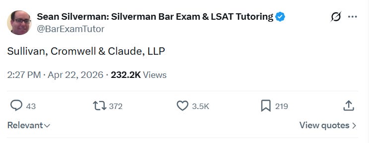 The firm has not been sanctioned. The partner in charge, Andrew Dietderich, said S&C does have internal AI safeguards, but they were not followed when the document was prepared. The story has still landed hard, for two reasons. First, the firm itself: S&C partners charge close to $2,000 an hour, and S&C is outside counsel to OpenAI on its “safe and ethical” deployment of AI. Second, the underlying case — it involves the unwinding of an alleged Cambodian forced-labour scam compound, where the firm is trying to trace billions of dollars in crypto to compensate victims. The errors set the case back by around two weeks.