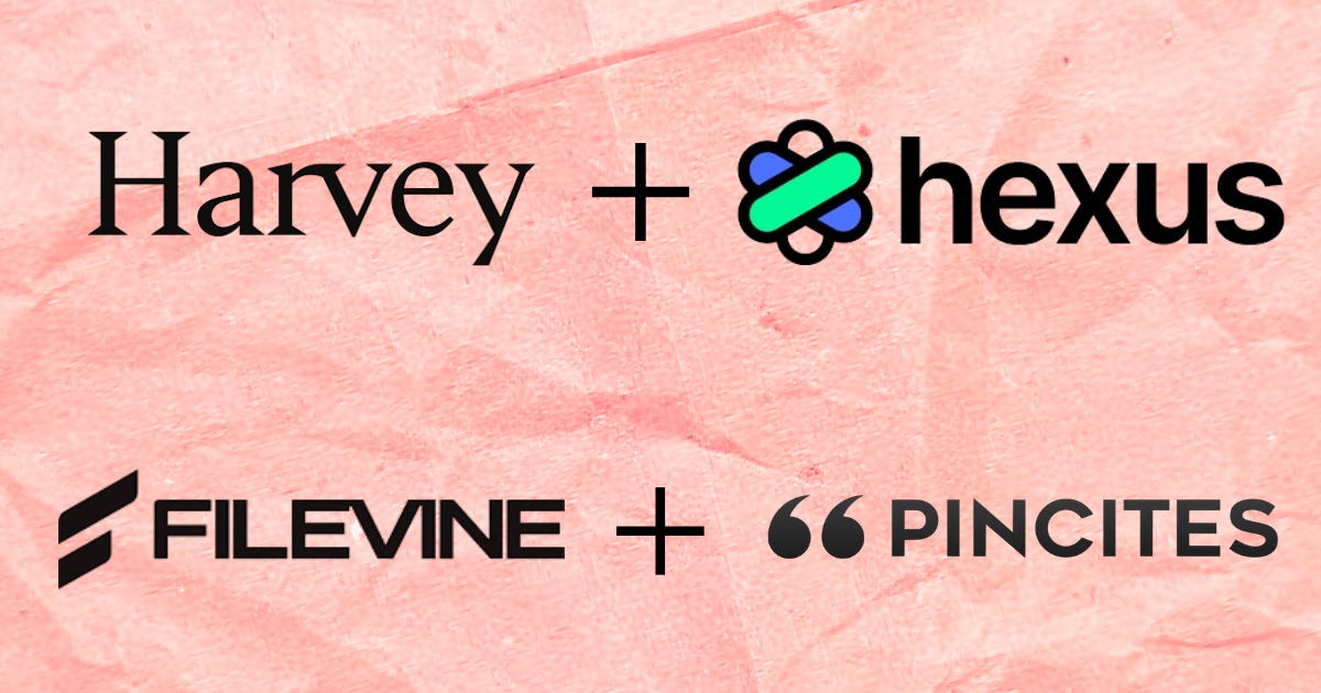 George's take: These acquisitions reveal the end-to-end platform thesis gaining serious traction. Legal teams are tired of stitching together six different AI tools for research, drafting, review, and collaboration. Harvey buying Hexus to strengthen in-house capabilities and Filevine acquiring Pincites to own the full contract workflow both point to the fact they want to become an all in one platform that eliminate tool-switching friction. Maybe we will see Legora, CoCounsel, or LexisNexis making similar acquisitions to fill capability gaps in their product offerings.