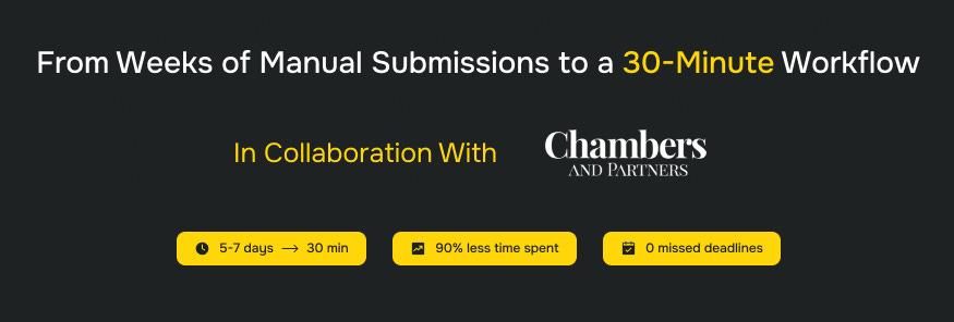 Automate your Chambers, Legal 500 and IFLR1000 submissions, and reuse your submissions data for pitches and fee proposals. Book a Ranking Copilot demo.