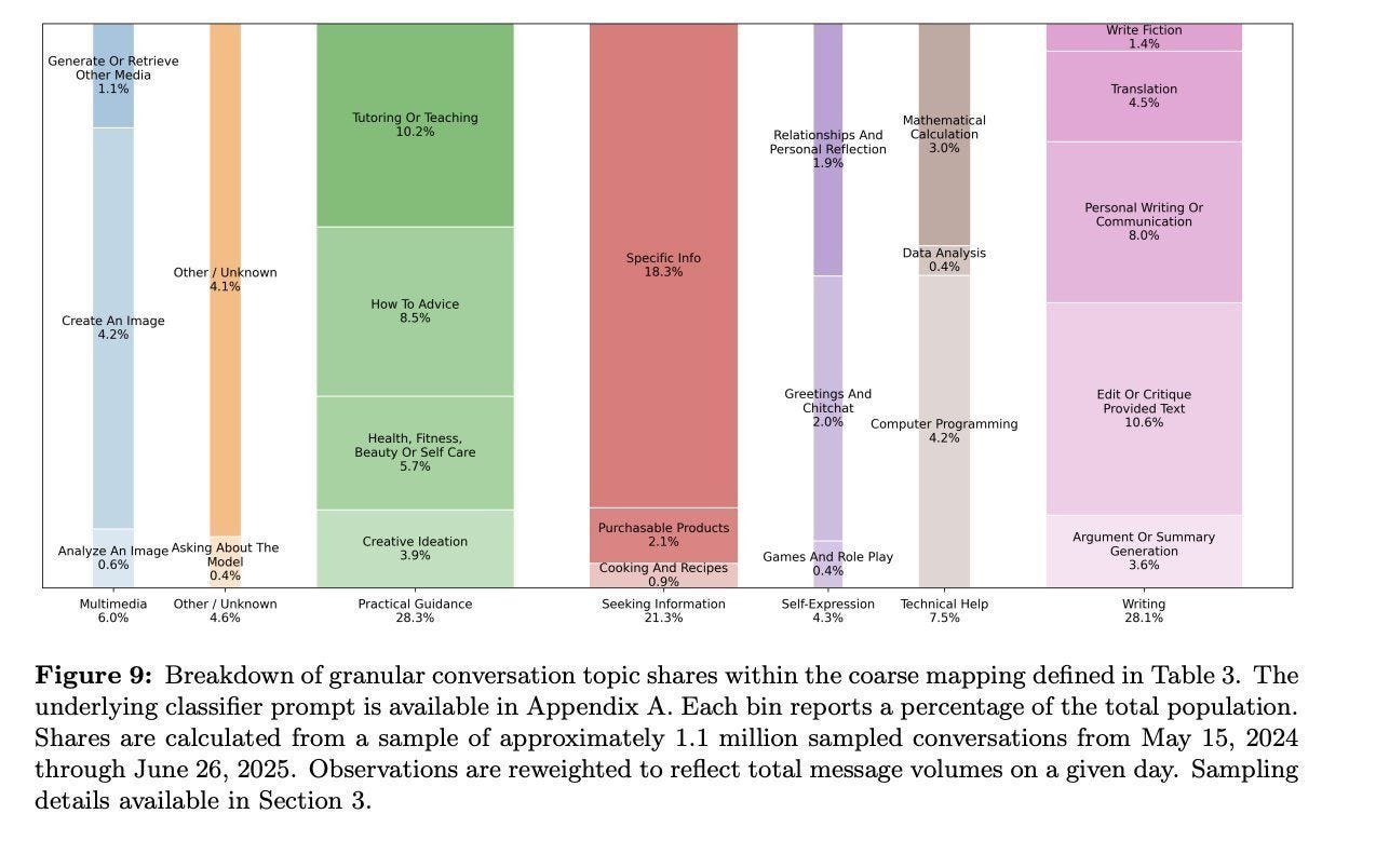 Georges take: ChatGPT isn’t replacing jobs, it’s replacing Google, coaches, and friends. The killer use cases aren’t coding or research, but tutoring, writing, self-care, and shopping advice. In other words, AI is becoming the first stop for life management.