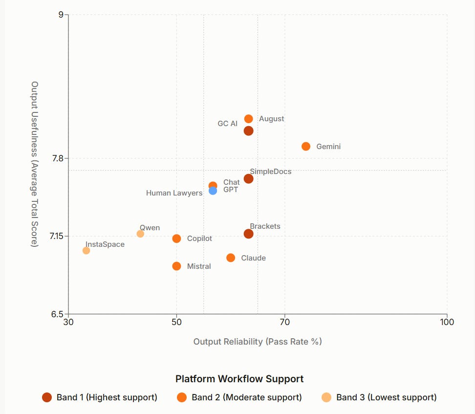 George’s take: The study reveals that workflow integration matters more than raw performance. Legal AI tools don't necessarily produce better outputs than ChatGPT or Claude, but they integrate seamlessly into lawyers' existing Microsoft Word workflows and provide better context handling. This explains why specialised legal AI companies can compete despite not having the most advanced underlying models.